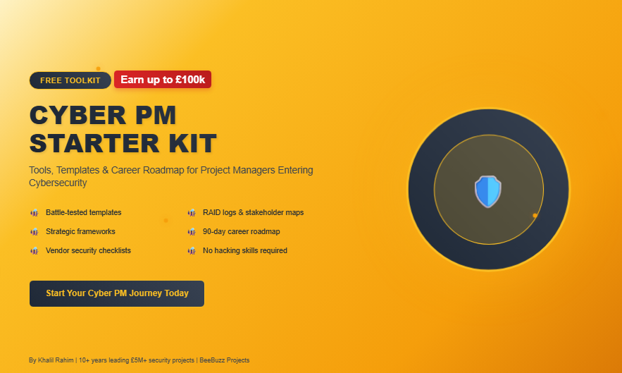 This free Cyber PM Starter Kit gives you the real tools, templates, and frameworks used to lead £5M+ cybersecurity programs in the UK, finance, and tech sectors.